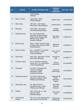 Azaam Bin Yacob. Pejabat Pos Kuala Berang Peti Surat 31 21700 Kuala Berang Terengganu NoTel. Pejabat Majlis Perbandaran Sepang 63300 Cyberjaya Taman Sains Selangor Selangor Cyber Valley 64000 KLIA 68000 Ampang 68100 Batu Caves Kuala Lumpur.